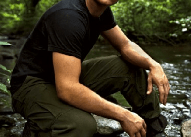 I jump back. His voice was right under my feet. Still there’s nothing. Then his eyes open, unmistakably blue in the brown mud and green leaves. I gasp and am rewarded with a hint of white teeth as he laughs.